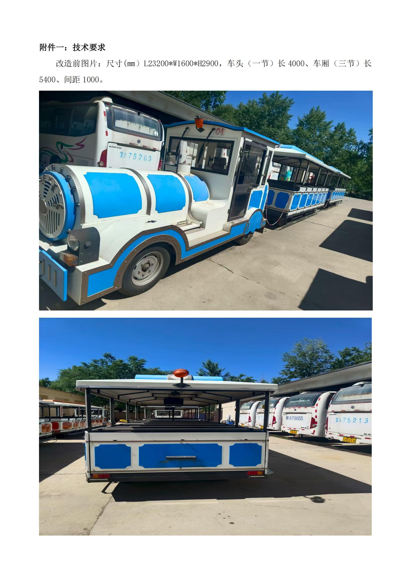 ? ? 三、 項目概況:擬對現(xiàn)有火車進(jìn)行花車改造,現(xiàn)面向全社會供應(yīng)商公開征詢改造報價。作為后續(xù)招標(biāo)(比選、詢價等)依據(jù)。