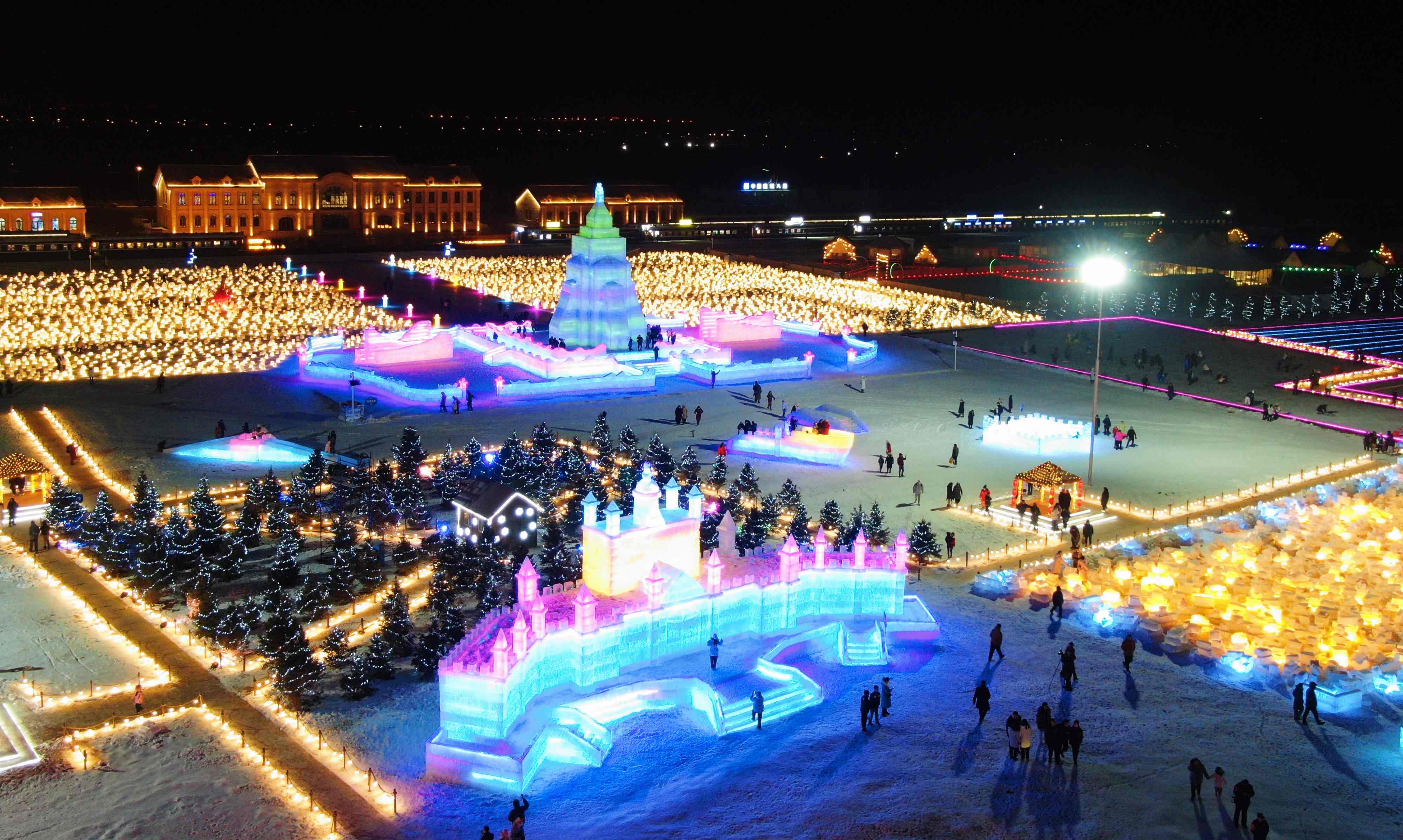 現(xiàn)場打造七大主題板塊,首次實現(xiàn)科技、演藝、體育與冰雪的融合,以大型冰雕、冰雪娛樂、美食市集等完整體系,為后續(xù)發(fā)展奠定了堅實基礎(chǔ)。